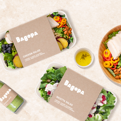 BAGOPA는 항상 신선한 재료로 건강하지만 맛있는 식사를 추구하는 브랜드로 볼드하고 동글동글한 텍스트형 로고로 부드럽게 표현하여 언제 어디서든 편안하게 섭취 가능한 편리함을 갖춘 이미지를 강조하여 작업하였습니다.